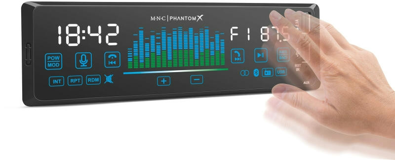 Az MNC fejegységek új generációja megérkezett! Többé nem kell hozzá sem érnie a fejegységhez, elég csak elhúzni előtte a kezét máris válthat például rádió csatornát vagy zeneszámot. A PhantomX teljesen érintésérzékeny előlapot és gesztusvezérlést kapott, így kölcsönözve letisztult, elegáns megjelenést a készüléknek. A zenéinket USB adathordozón is magunkkal vihetjük, de lehetőség van AUX és Bluetooth kapcsolaton keresztül is zenét lejátszani.
